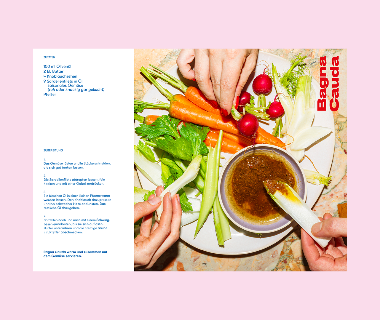 Das Rezeptheft enthält neun (davon vier vegetarische) Antipasti-Rezepte von Bagnet bis Zucchiniflan und eine literarische Liebeserklärung ans familiäre Fressen.